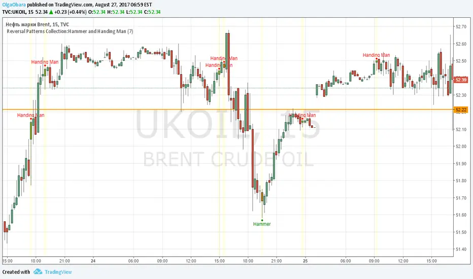 I've started to publish Reversal Patterns Collection. First script contains Hammer and Handing Man patterns. User can select period for candle size calculation (period with representative number of different size candles for accurate distinguish average, short and long candles)and on/off highlighting of pattern candles.