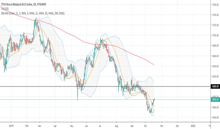Combination of Bollinger Bands and 4 Moving Averages in one indicator.