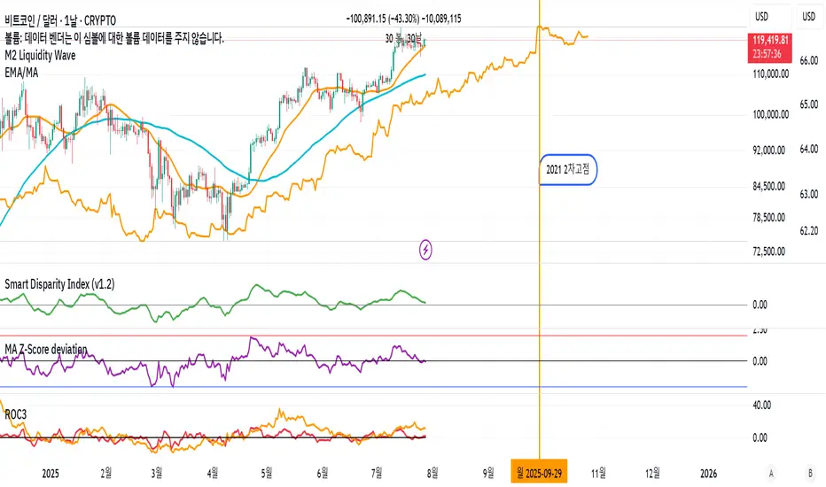 This custom indicator displays three Rate of Change (ROC) lines, each with independently adjustable lookback periods (default: 7, 30, and 100 days). It allows you to quickly compare short-, mid-, and long-term price momentum on the same chart.
