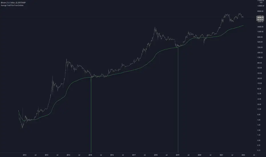 This is an indicator to help determine where the bottom of the market is currently based on the average close of the previous cycle. This is an idea from Jay_DCA on YouTube and I thought it would be fun to code. Enjoy!