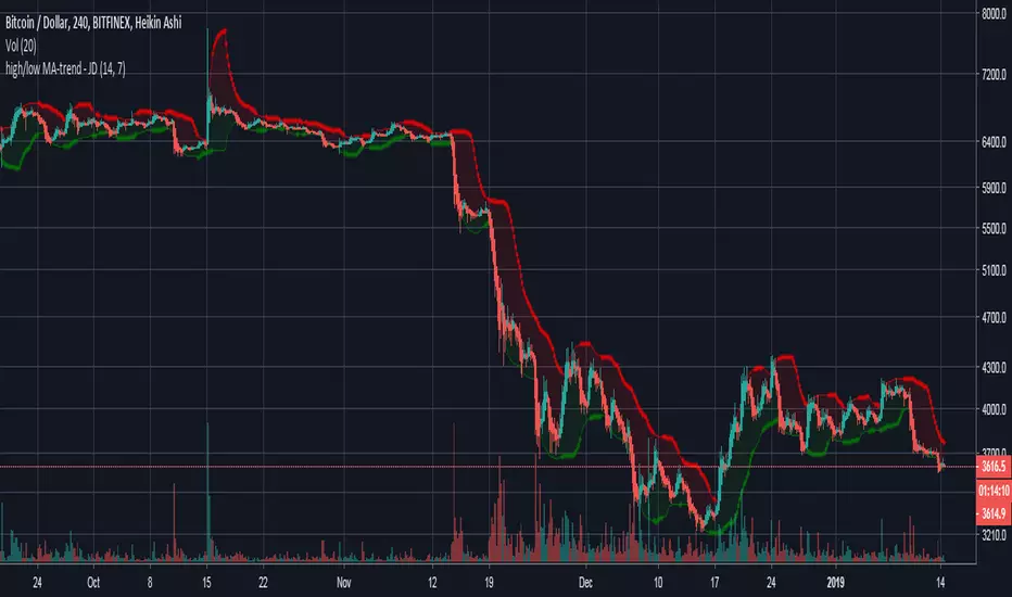 Short script for trend indication taking a moving average of the highs and the lows seperately.