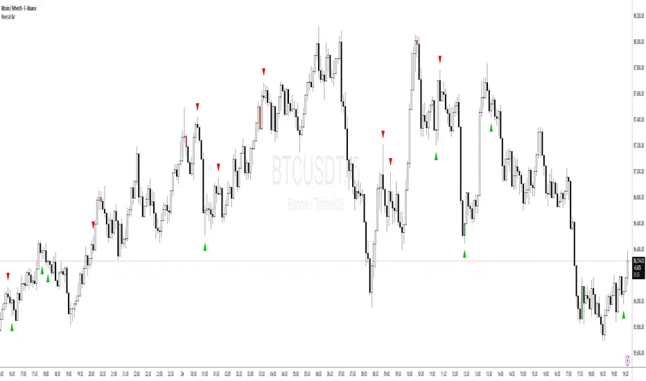 Inspired by Al Brooks' "Trading Price Action Reversals," this indicator detects potential bull and bear reversal bars. Bull reversals require a green bar with close above mid-range, small upper tail (≤30%), large lower tail (≥30%), and low below previous low without significant overlap. Bear reversals are the opposite. Triangles mark these setups for early reversal signals in trends or climaxes. Remember, markets test extremes—use with trend lines for confirmation, as single bars are often traps without a second leg.
