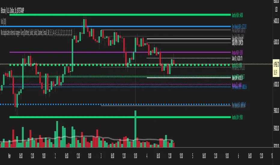 Generates Range & EQ levels and removes duplicates. Prioritizes by higher timeframe for duplicates. For example, on Monday's open, weekly open is displayed while daily open is hidden automatically.