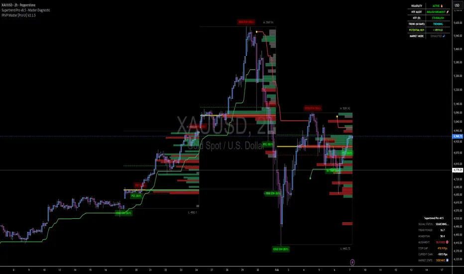 ### Release Notes: FRVP Master [Pro UI] V2.1.5 🚀This update transforms the script into a fully automated trading workstation. We have introduced a Dynamic Dashboard that serves as your command center, combined with a logic overhaul that makes signals more sensitive to real-time price movements.