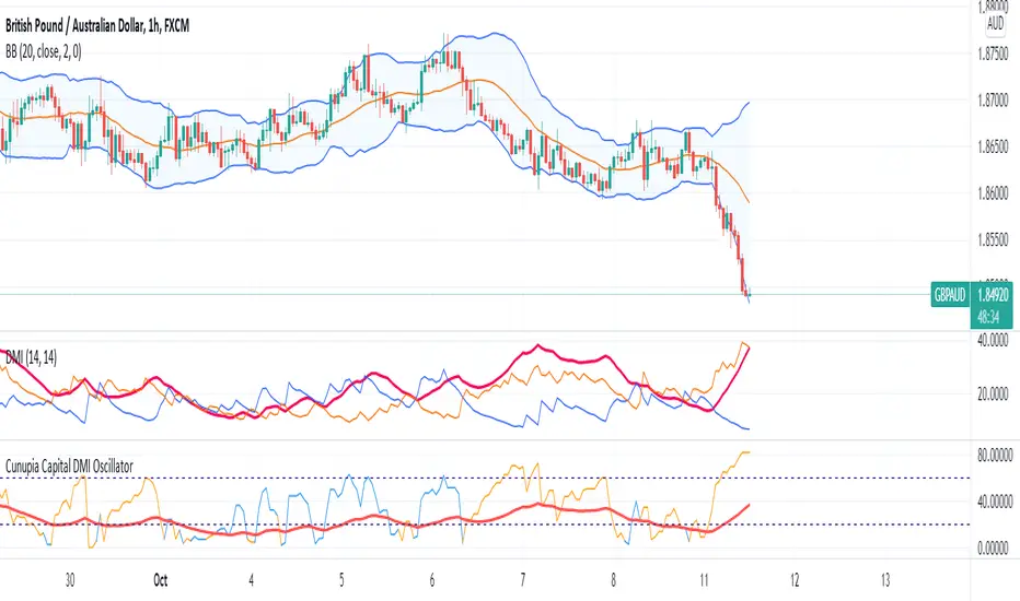 Oscillator for DMI, it allows you to see the difference in percentage with the different DMI lines, positive and negative and it's strength.