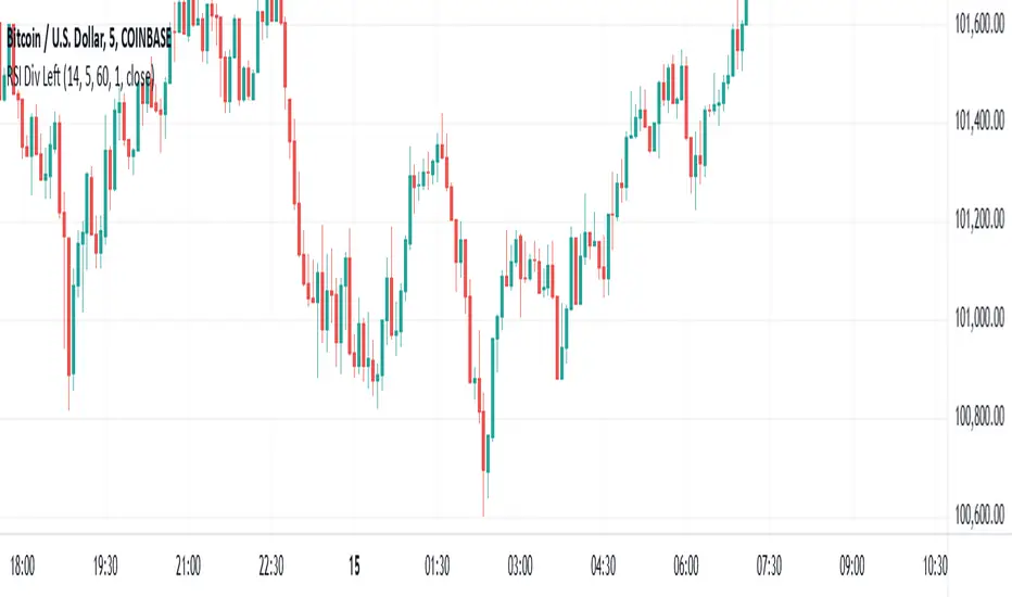 - **Lookback Left (lookbackLeft):** Defines the number of bars to look back for pivot confirmation. This allows for adjusting the sensitivity of the divergence.