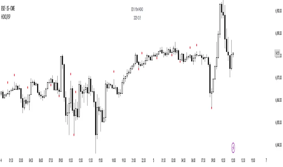 HOKO is a multifunctional chart-overlay designed to display clean market context and detect PSP (Price-Structure Projection) signals based on candle-body direction differences between the main symbol and two reference indices.