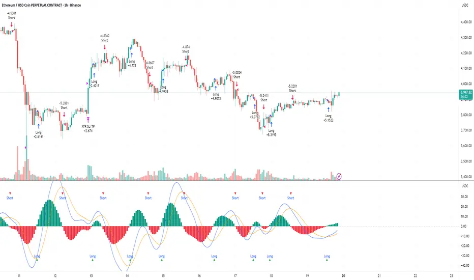 This strategy combines MACD momentum shifts with DEMA trend acceleration to improve entry timing and avoid delayed reactions common in standard EMA-based systems. It is optimized for 1H perpetual futures (e.g., ETHUSDT.P) and supports both long and short positions with ATR-based risk control.