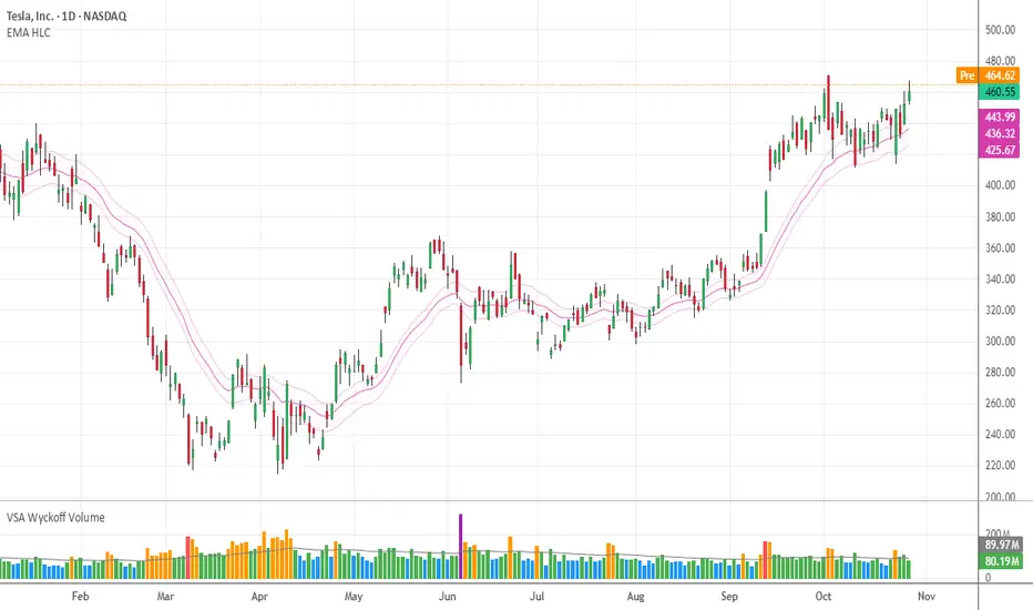 Exponential Moving Averages (EMA) for High, Low, and Close prices