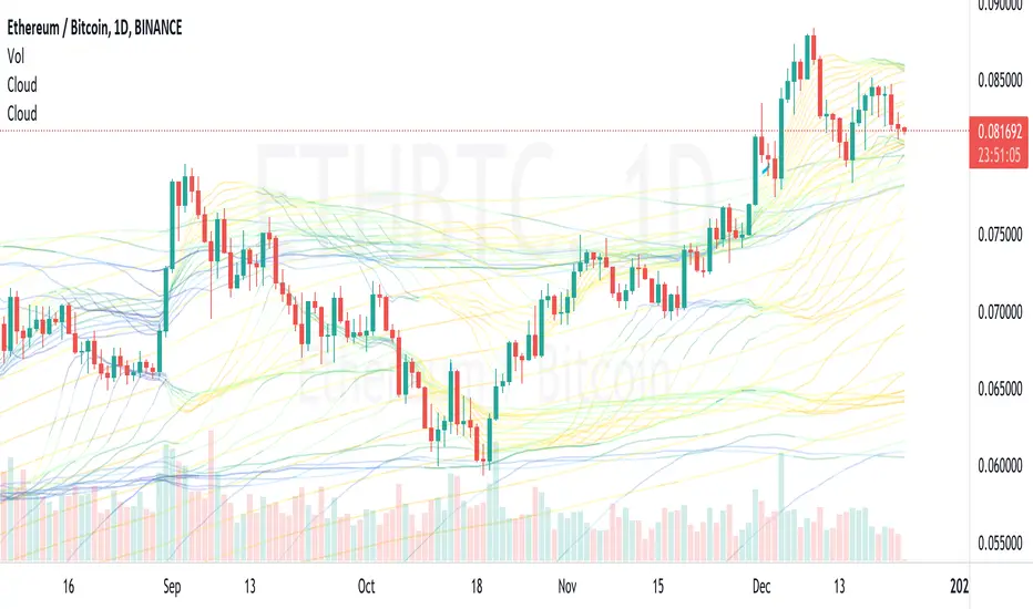 This script shows a cloud of Bollinger bands of various period lengths surrounding price action.