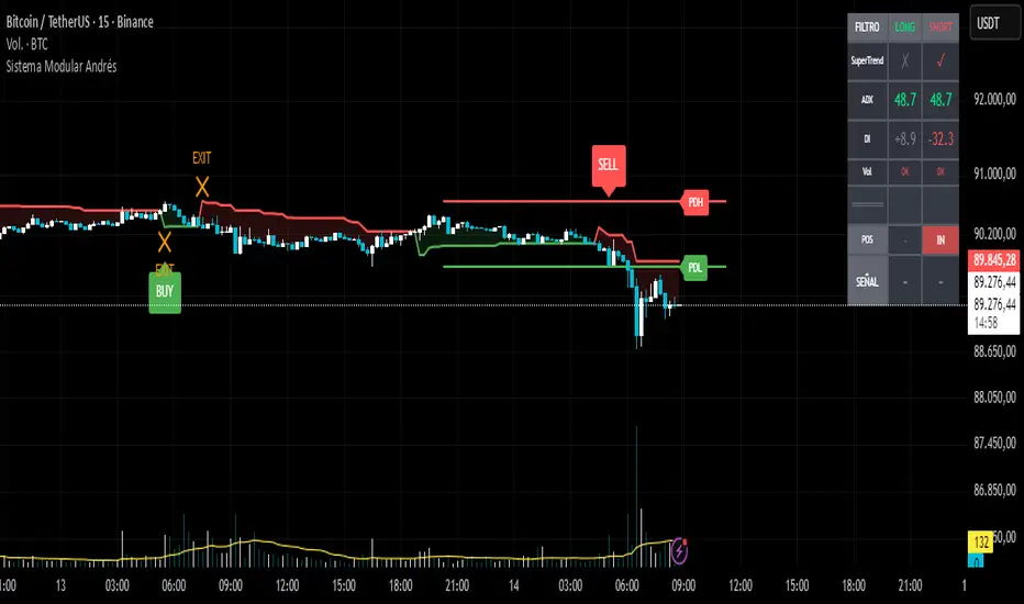 Default configuration: SuperTrend (ATR 10, 3.0) + ADX >23 + DI alignment