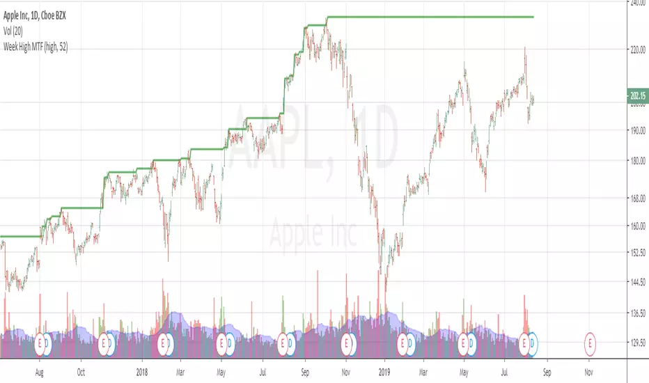 Simple script to plot weekly data into your chart and as example how MTF works in pine script.