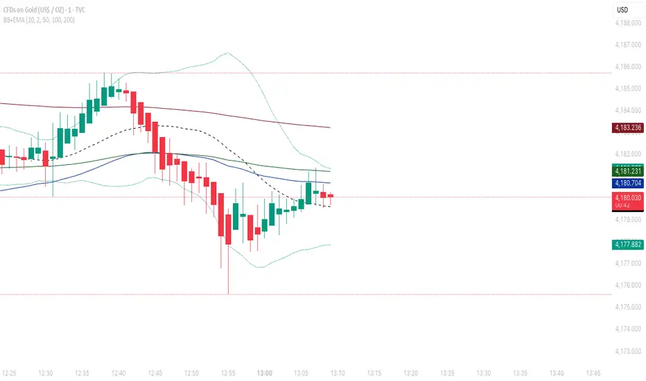 Just a combination of BB and EMA. An easy way to immediately add bollinger band and multiple ema to your chart.