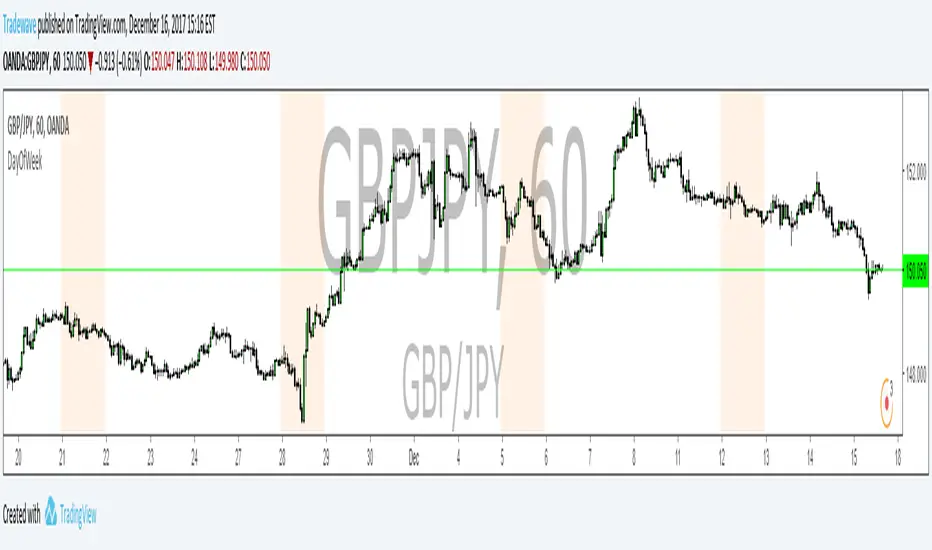 This indicator will shade the background to a specified color based on a chosen day of the week.