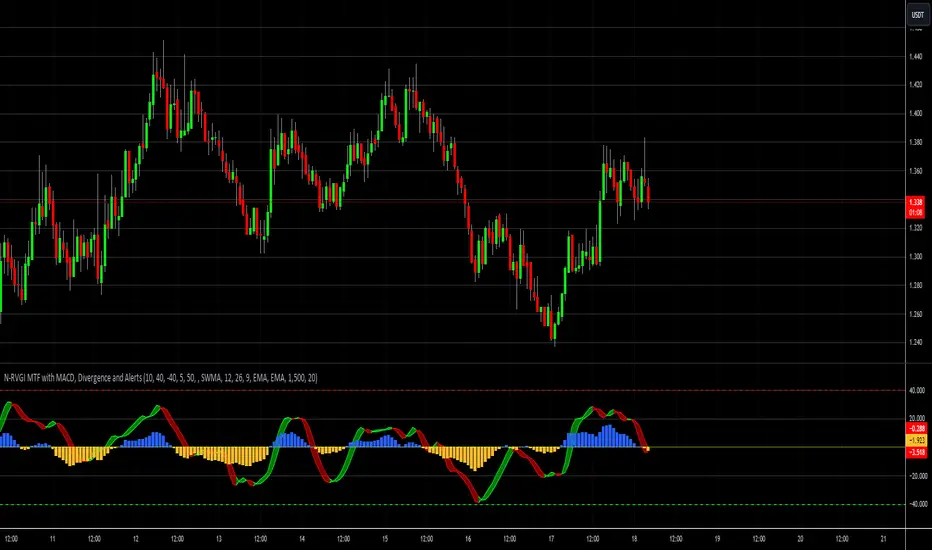 Normalized Relative Vigor Index (N-RVGI) [MTF] with MACD, Divergence, and AlertsDescription: The Billware Normalized Relative Vigor Index (N-RVGI) is a comprehensive multi-timeframe (MTF) indicator designed to provide a robust analysis of market trends by combining the Relative Vigor Index (RVGI) with Moving Average Convergence Divergence (MACD) and divergence detection. This indicator offers dynamic scaling for MACD, advanced visualization, and customizable alerts to assist traders in identifying trend changes, divergences, and key trading signals.