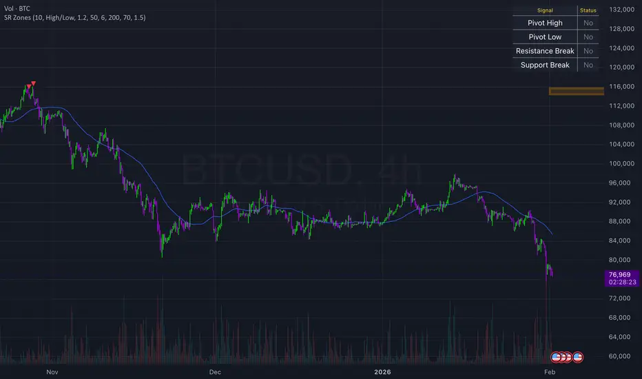 This is an original open-source indicator designed to identify dynamic support and resistance zones using pivot point clusters, adaptive ATR-based width, and volume-weighted strength scoring.