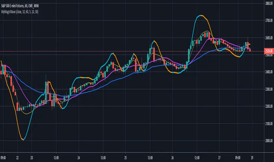 The MAGicWAVE is my proprietary formula that produces a "Magnified" Zero Lag Weighted Average that helps track a trend on a price chart - it can be used with most chart types - not necessarily Candle - and we can adjust the magnification factor and the colors for the up and down moves (waves) - it also provides additional MA lines which can be adjusted or hidden altogether - a Zero Lag line (the yellow line) and 2 SMAs - which together can additionally act as filters or signals for entries or exits.