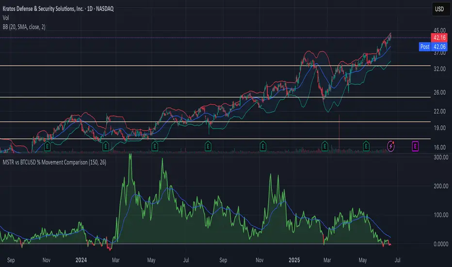Example: On a 1-hour chart, if MSTR rises 4% and BTCUSD rises 1% over 50 bars, the difference line plots at +3 (green) with green fill, and the 26-period EMA might be at +2.2, indicating MSTR’s outperformance trend.