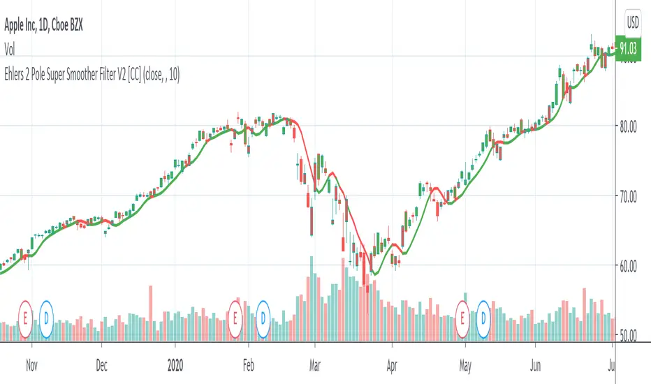 Ehlers 2 Pole Super Smoother Filter V2 [CC]