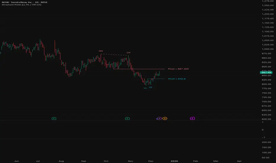 ・As long as the structure remains valid (price hasn't violated the HL or LH), the Pivot Line extends to the right, acting as a live reference for breakouts or breakdowns.