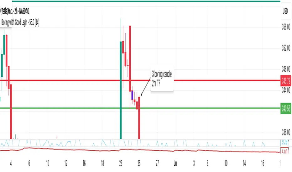 This TradingView Pine Script highlights “boring” candles that follow a specific “legin” candle, based on strict supply/demand zone and price action rules inspired by your trading strategy.A candle will be highlighted if it meets all of these: