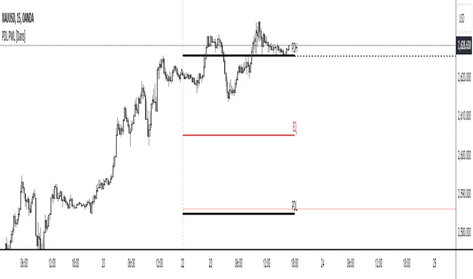 The PDL PWL indicator is a simple-designed for traders seeking to visualize key price levels derived from previous daily and weekly trading sessions. By incorporating significant price points such as Previous Day High (PDH), Previous Day Low (PDL), Previous Week High (PWH), and Previous Week Low (PWL), this indicator helps to make informed decisions based on historical price action.