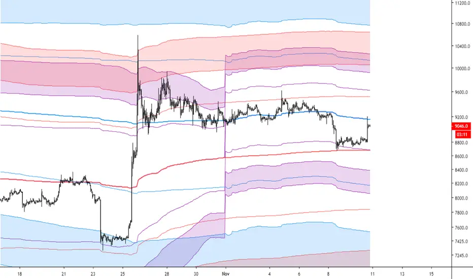 This script displays multiple standard deviations for multiple vwaps. It also has options to use custom methods of calculating standard deviations.