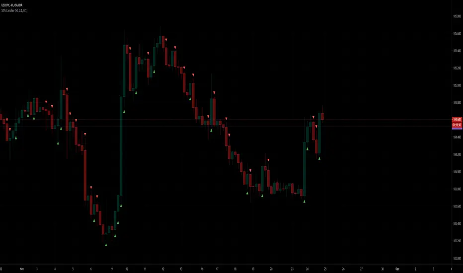 The 10% Candles indicator tags all candles which have a 10% or more gain/loss