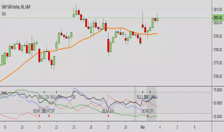 Hi guys I combine RSI and DMI in one study with alerts when price is Overbought, Oversold. Buy and sell divergences in the DMI and strength of the trend in the background I hope its useful for you as its to me
