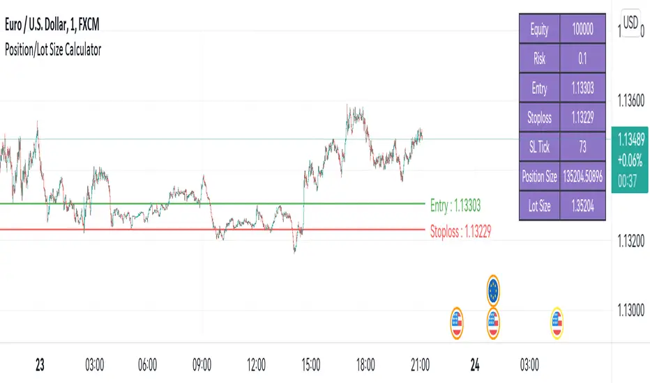 This indiator will help you to calculate your position size for managing the risk