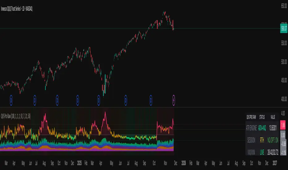 QVS Pro (Quantitative Volatility Score) is an advanced volatility measurement system that helps you understand market conditions beyond simple high or low volatility readings. It analyzes the quality and structure of volatility to identify the best trading opportunities.