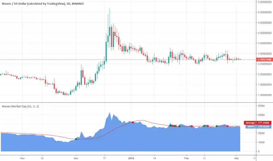 This is Market Cap chart of Waves cryptocurrency with some additional features.