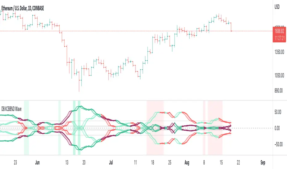 The indicator plots the percent difference between the low and high prices against a combined Kelpler Channel Bollinger Bands for the current timeframe. The low percent difference and the high percent difference each have their own waves plotted. A mirror mode default allows both waves to be visualized in a mirrored plot that clearly shows when outer bands are present and when they swap. Each percent difference band is displayed with a 1 bar lookback to visualize local tops/bottoms.