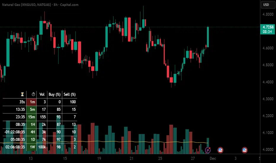 Get an unfair edge with the cleanest, fastest, and most accurate multi-timeframe volume analyzer available on TradingView. This tool reveals where buyers and sellers are truly active across multiple timeframes—helping you confirm trends, avoid traps, and enter with confidence.