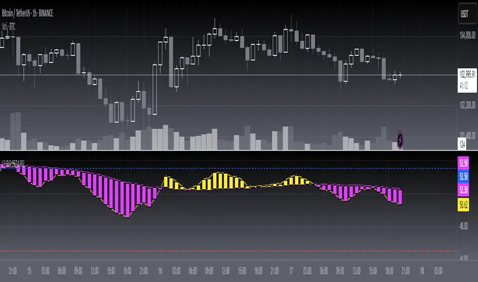 BACKGROUNDThe DFT-Adapted RSI was first introduced by John F. Ehlers in January 2007 as part of his groundbreaking work in Fourier Transforms for Traders. This indicator represents a significant advancement over traditional RSI by incorporating dynamic parameter adjustment based on detected market cycles. Instead of using a fixed period length, it employs discrete Fourier transform (DFT) techniques to determine the optimal cycle length for each bar, thereby enhancing the indicator's responsiveness to changing market conditions.