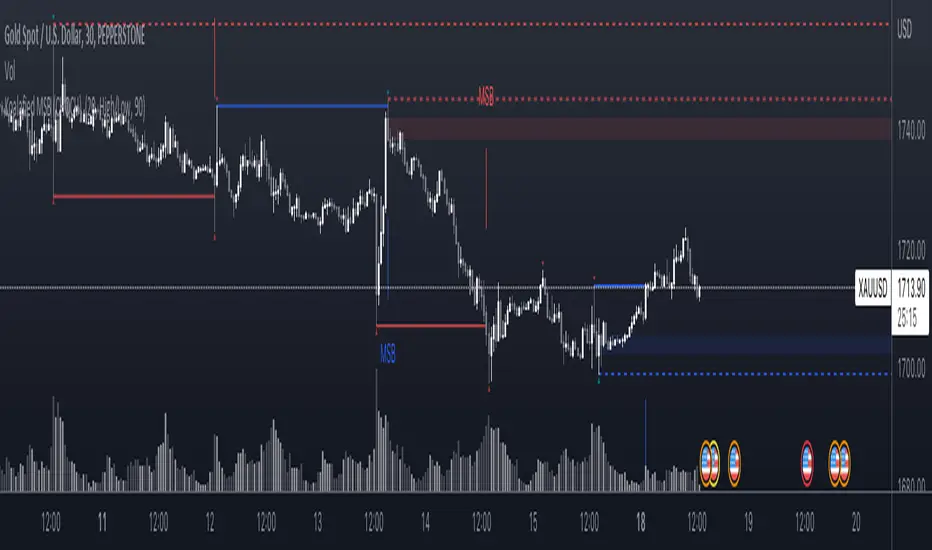 As MSB are based on pivot points there is an inherent lag built into the script. The user selected length that the pivots are calculated on requires a number of bars to pass before a pivot is confirmed. Market Structure Breaks typically occur multiple bars after a pivot point so the offset isn't typically an issue, although occasionally a pivot will be validated after a MSB and it's offset plot will place it prior to the MSB.