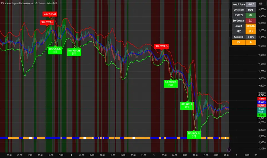 During strong rallies, traditional indicators repeatedly hit overbought conditions, triggering sell after sell as price climbs. A trader might execute 10-15 sells during a sustained move from $86K to $93K, selling away their position piece by piece instead of letting profits run. Each sell captures a small gain while missing the larger move.