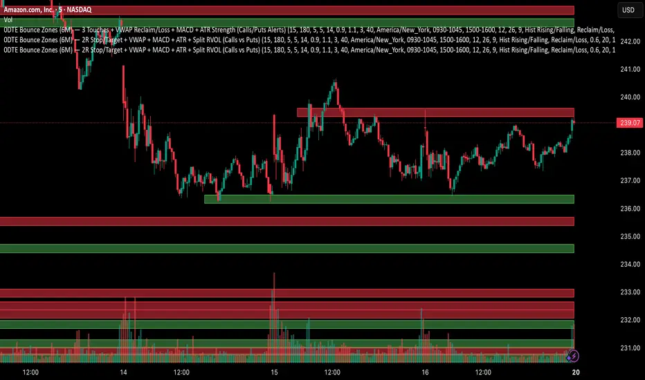 0DTE Bounce Zones (6M) — Support & Resistance with VWAP, Volume, and Risk Management