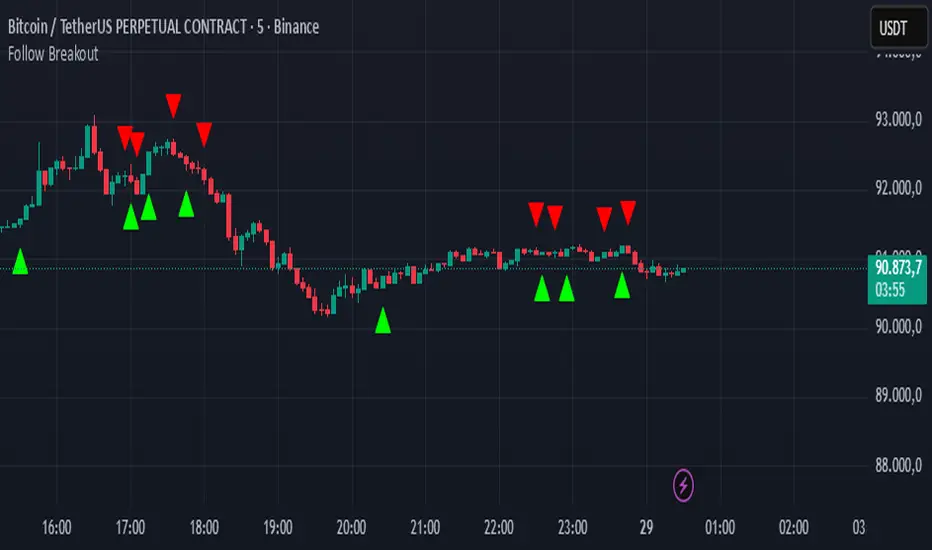 The indicator tracks trend breakouts. It generates multiple signals during sideways trends.