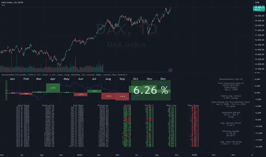 Lite: Wie Pro, jedoch nur "DAX", "SPX" und "NDX" bis zu 40 Jahre in die Vergangenheit, alle anderen Symbole 5 Jahre.