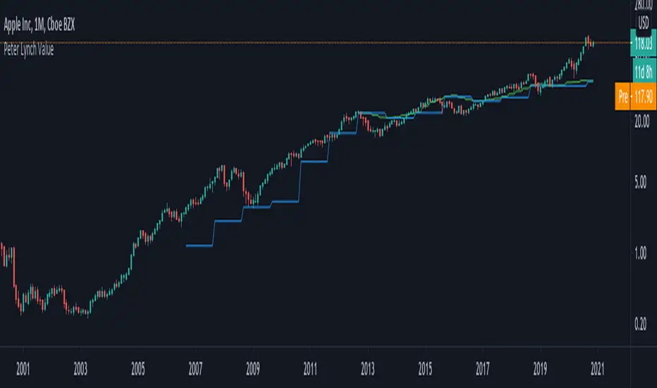 Green : Represent the earning per share multiplied by 15 like Peter Lynch showed in his book One Up on Wall Street