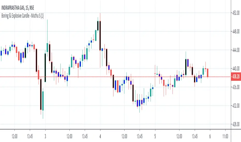 This Indicator marks Explosive candle (Black) and Boring Candle (Blue) on the chart based on various inputs like ATR Range, Legout Strength etc.
