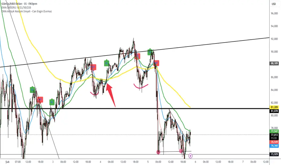 15 dakikalık grafiklerde ema 8 in sırasıyla 21 ve 50 yi kesmesi ile alim satim sinyali üretir