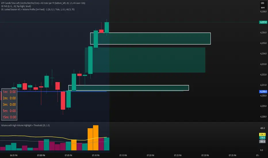 HTF Candle Time Left (1m/2m/3m/5m/15m) + HV Color per TF