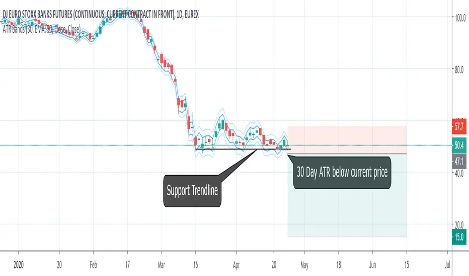 A good place to enter this trade would be a price break below the support trendline minus 50 to 100% of the current ATR value.