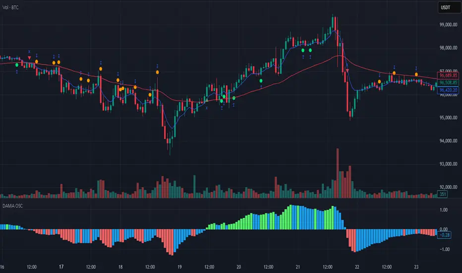 Designed for trend-following, reversal timing, and volatility filtering, DAMA OSC adapts to market conditions and highlights actionable signals in real-time.