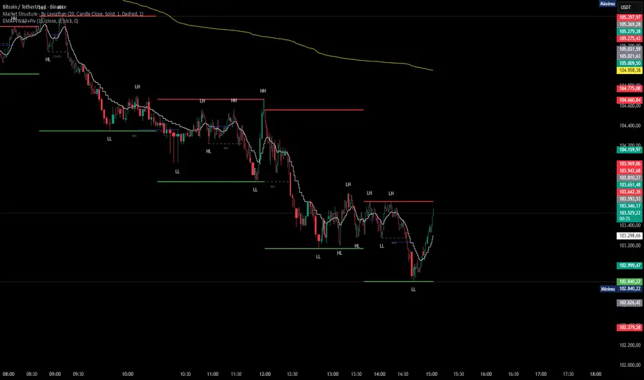 Pivots: Dynamic support (green) and resistance (red) levels derived from highest/lowest values on a custom 100-unit timeframe.