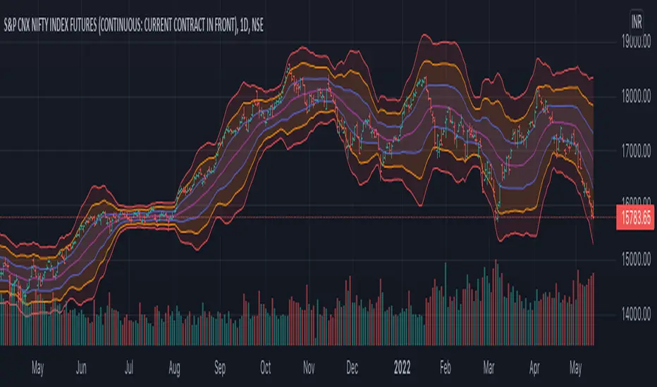 This triple Bollinger script is very useful for options traders to determine the trend condition. When the trend stays within 1 sigma limits it is termed as "congestion", breakout of congestion starts the "trending" phase and the big breakout termed "Blowout" happens when the underlying crosses the 2sigma and reaches 3 sigma limits in very short time at steep trend angles. The script provides dynamic alerts as soon as the underlying breaks out of these zones and enables options traders to stay in the trade longer.https://www.tradingview.com/chart/s97nMr1n/