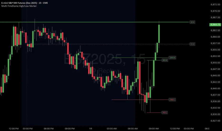 v2.0 Update - Major ImprovementsSix Timeframes: Track high/low/open levels across up to 6 different timeframes simultaneously with independent styling