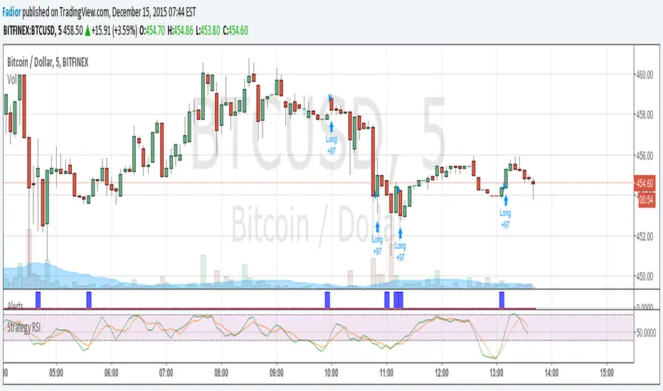 Simple strategy that buy and sell when RSI is under/above a given thresholds. Take profit is set to $3. Beware this strategy doesn't work with other assets.